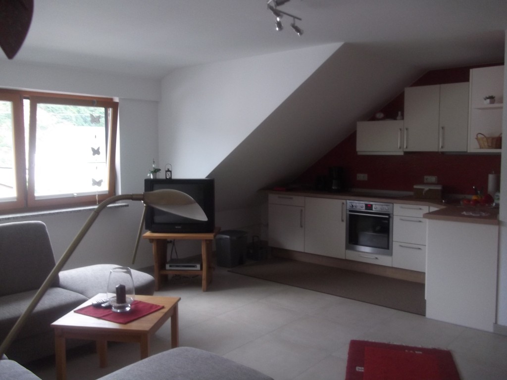 besteht aus einem Wohn- und Essbereich mit Kochnische, Schlafzimmer, seperatem WC und einem großzügigen Bad mit Dusche.